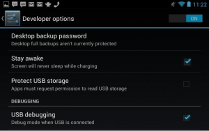 3. Tap on the “Developer options” and check both “USB debugging” and “Stay awake”.